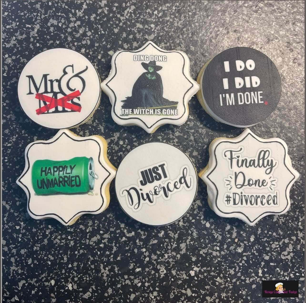 Also, Edible images with the TikTok face-pulling trend. And, Sugar cookies with edible images with divorce sayings.